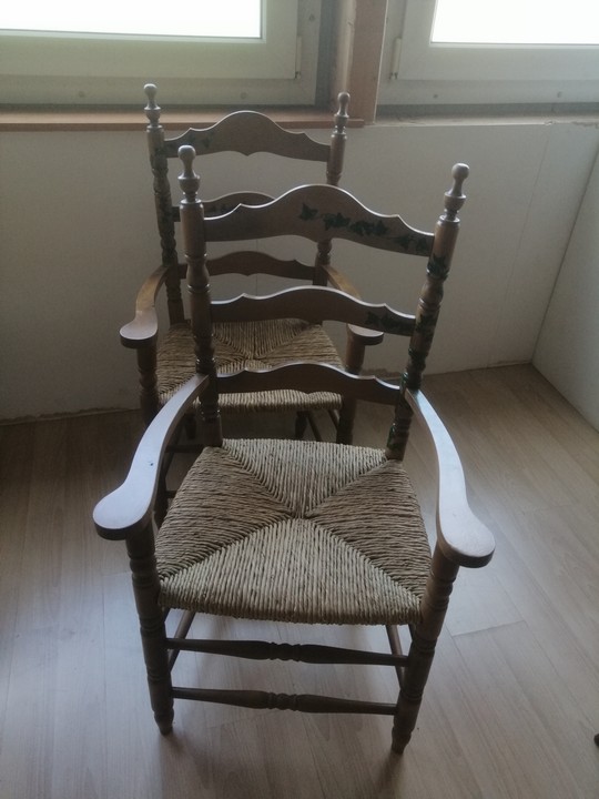 Chaise d'angle ou coin de feu en paillage à l'ancien